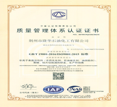 獲得了GB/T19001-2016/ISO19001:2015版質(zhì)量管理體系認(rèn)證書(shū),GB/T24001-2016/ISO14001:2015版環(huán)境管理體系認(rèn)證證書(shū),ISO45001:2018版職業(yè)健康管理體系認(rèn)證證書(shū),通過(guò)了省,市安全,環(huán)保考評(píng),監(jiān)測(cè)頒證,獲得“安全生產(chǎn)標(biāo)準(zhǔn)化”三級(jí)企業(yè)證書(shū)!